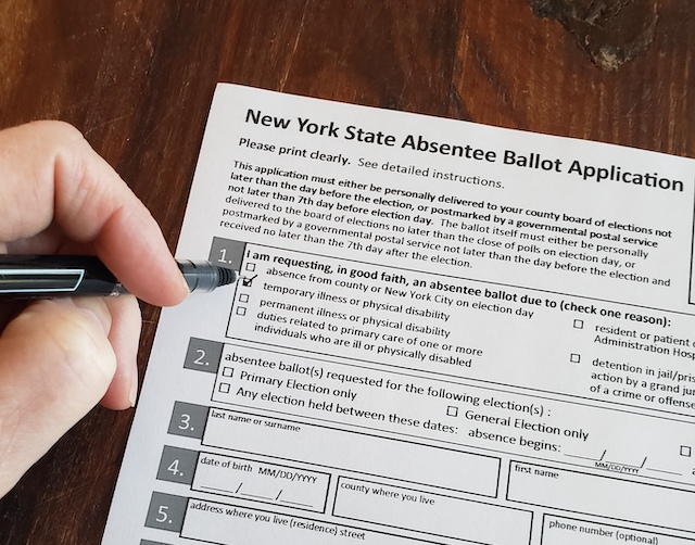 The absentee ballot measure is intended, he said, to ensure that “no New Yorker should have to choose between their health and their right to vote.”