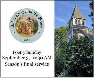 Poetry Sunday on September 3 at 10:30 AM marks the final service for the season at Union Chapel in the Grove. The service focuses on the work of the celebrated Persian poet Rumi.