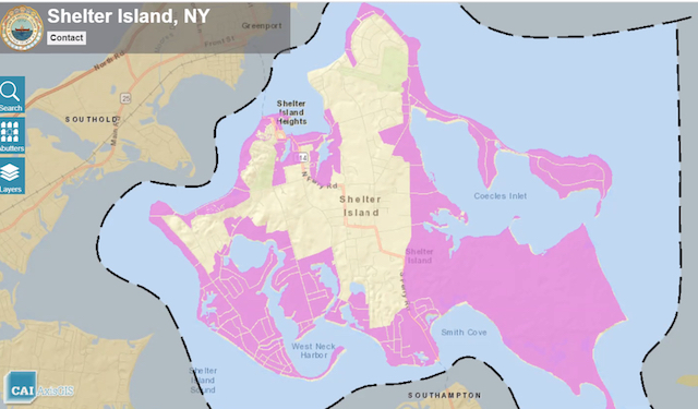 You can visit the Shelter Island GIS portal here. You can look at data associated with any single lot by clicking on the parcel and following prompts to review available information. Or you can interact with the program to show broader areas — like flood zones or zoning districts.