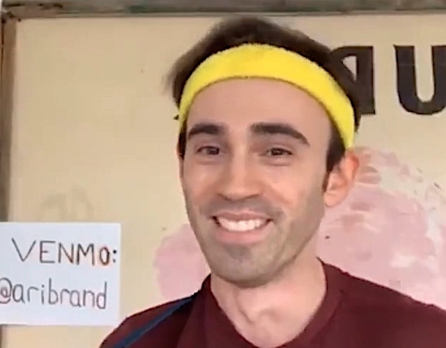 Instead of collecting cash donations in his guitar case, Brand is accepting them via Venmo (where he is @aribrand).