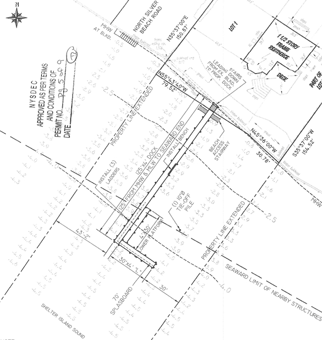 As it falls within the property’s 30-foot sideyard setback, the catwalk may require a variance from the Zoning Board of Appeals. It also falls within the Town’s regulated wetlands buffer and may require a wetlands permit from the Planning Board.